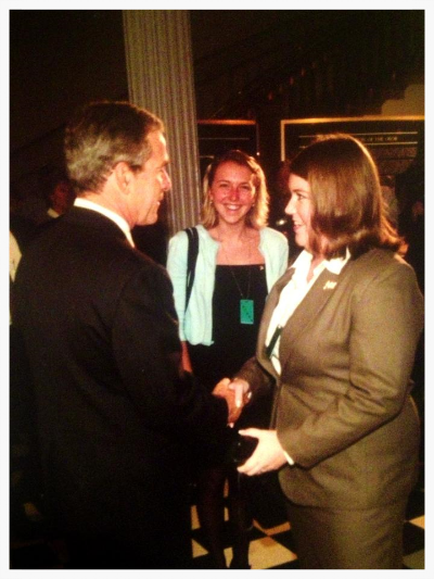Late that night, I found out that we were supposed to go back to work. I was so scared. Security was really tight and the White House had a four block restriction. We were escorted in a hummer with guys and big guns. That week we had several bomb threats. It was almost becoming normal to have to grab your bag and run out the door. I remember talking to my dad who wanted to drive up to DC and bring me home. I insisted on staying. I knew this would be a defining moment for our country and for President Bush's Administration and I wanted to be a part of it. I can't tell you how proud I am to be an American and to have served this country in President Bush's Administration.